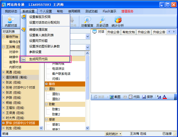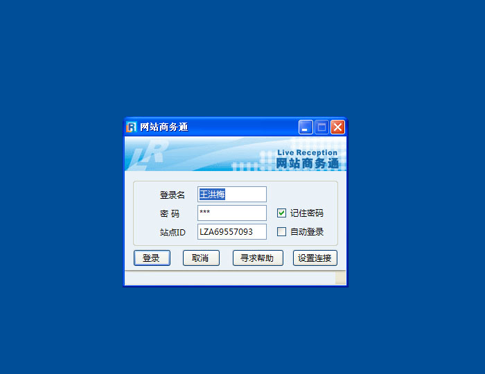 - 到网站商务通官方网站(www.zoosnet.net)下载安装LR软件,向客服人员申请一个免费试用账号或购买,登陆网站商务通,如(图1);