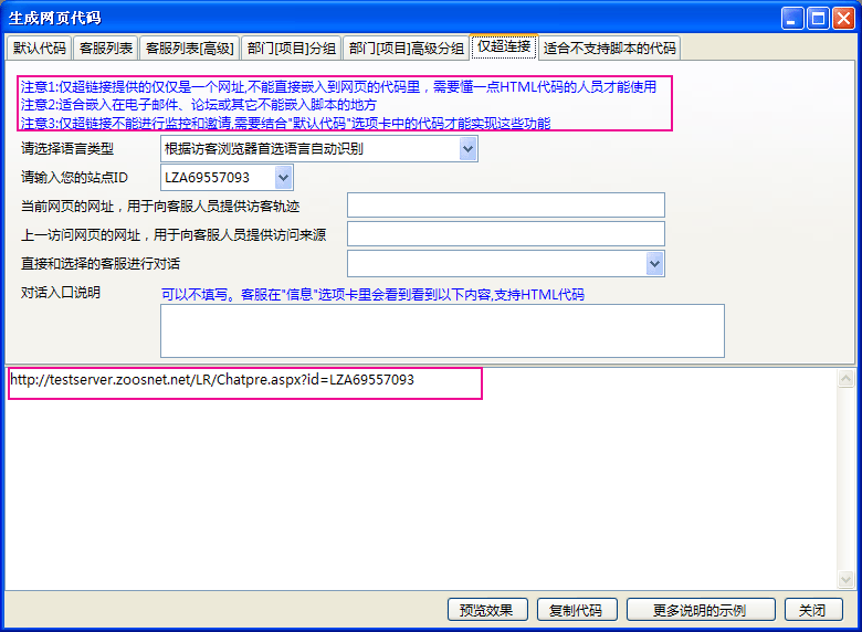 - 在“系统设置--生成网页代码”中选择"仅超链接"选项卡,复制生成的仅超链接代码,如(图3)