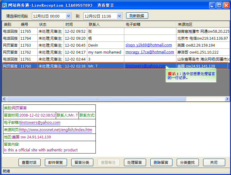 可以清楚的看到哪条留言已处理,哪条还没有处理,也方便于同站点内其他客服人员的协同合作
