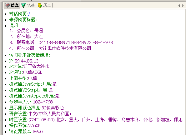 當會員訪客開始訪問時,客服人員可以看到如下參考信息: