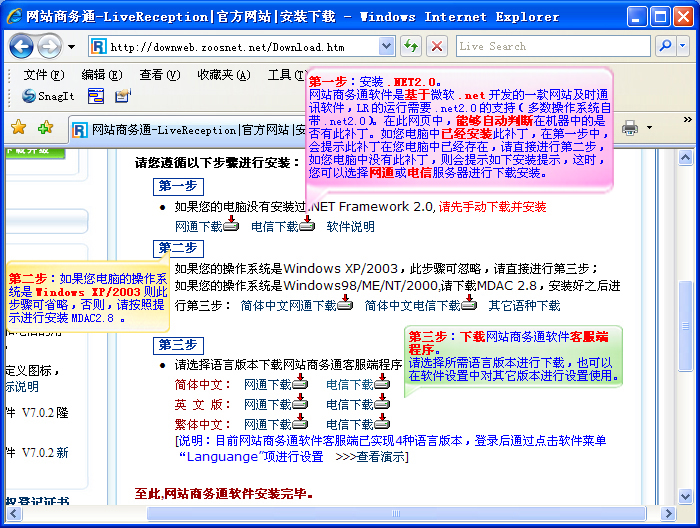 网站商务通(LR)软件的下载与安装非常简易,看完帮助文档您就会完全明了。