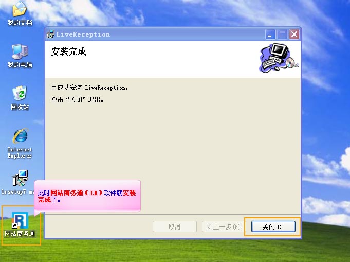 完成网站商务通(LR)软件的安装,此时在桌面会出现网站商务通(LR)软件的图标,如(图7)