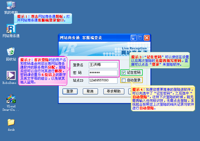 软件的登陆界面中输入登录名、密码以及站点ID然后点击“登录”,如(图2)