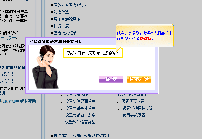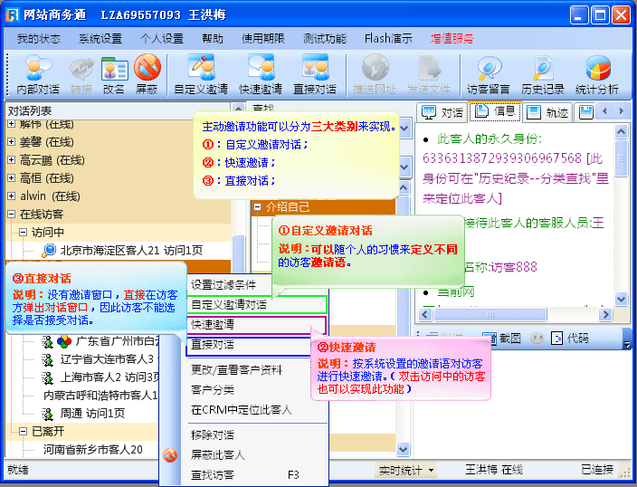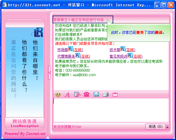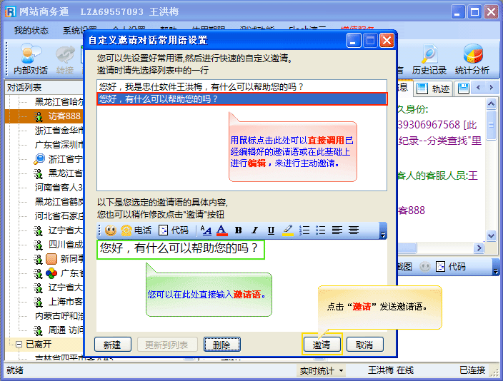 - 主动邀请是当访客正在浏览您的网站时,客服端可以直接向访客发出对话邀请的请求。