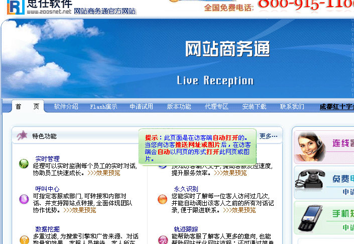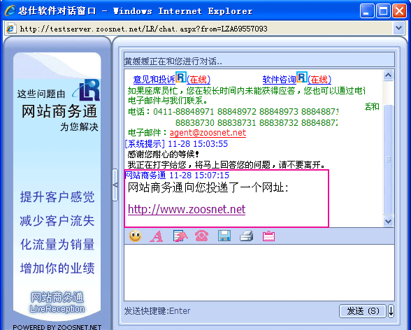 在访客在对话窗口看到信息的同时,客服人员向您发送的网址或图片会自动以网页的形式会访客打开。如(图5);