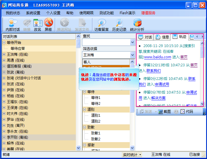 从软件的主界面您可以找到关于网站访客最全的信息资讯。