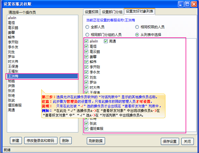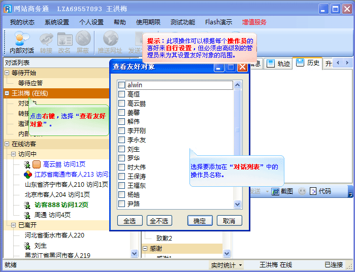 在对话列表中操作员处点击右键,打开“查看友好对象”,进行设置,如(图3);