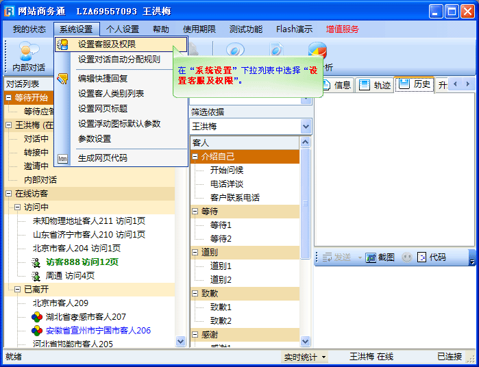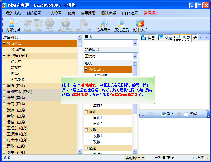 通过友好对象的设置,可以实现各部门[包括分公司]之间协同办公,经理可以实时监控员工的对话;可以方便您与其他客服人员之间的交流,客服之间也可以进行对话转接及文件传输