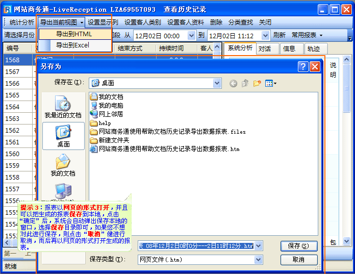 在历史记录中可以按照不同报表格式,从而导出报表,如(图2);