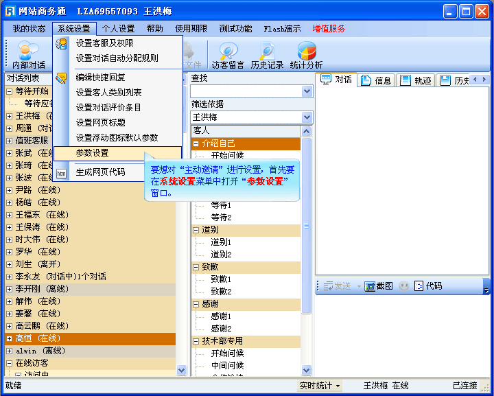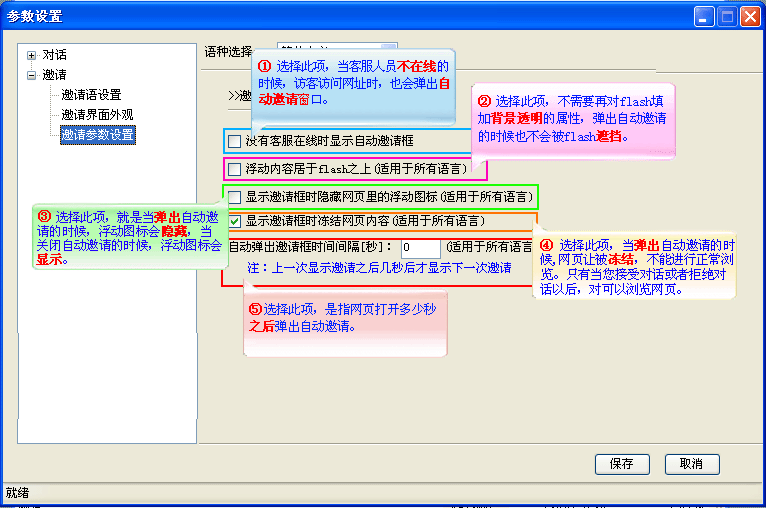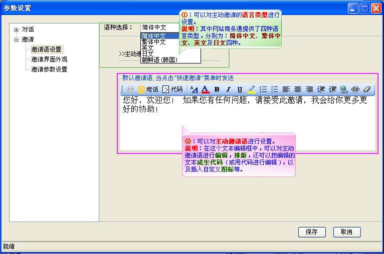 打开参数设置对话窗口,选中邀请下的邀请请设置,对主动邀请语进行自定义设置,如(图2);