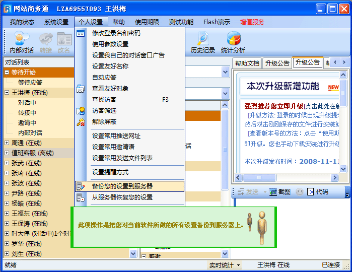 在“个人设置”的下拉菜单中选择“备份您的设置到服务器”,如(图2);