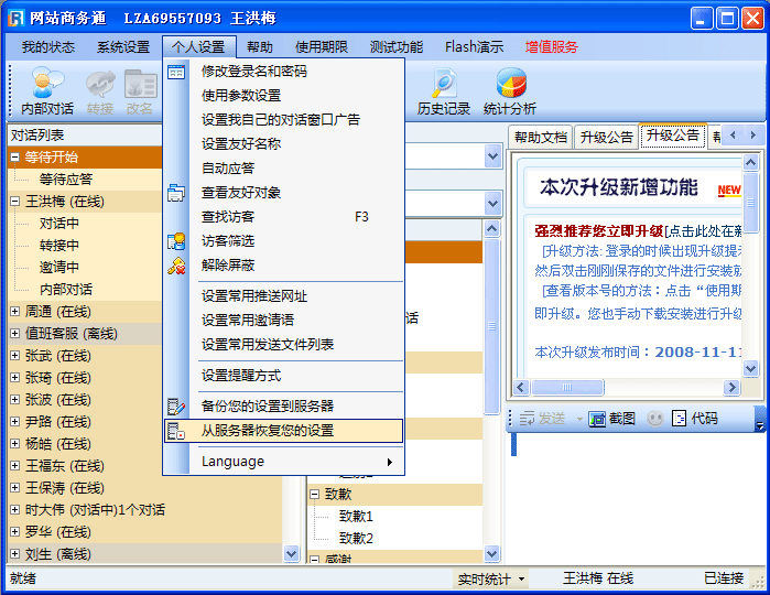 - 登录网站商务通(LR)软件,点击“个人设置”菜单项,如(图1);