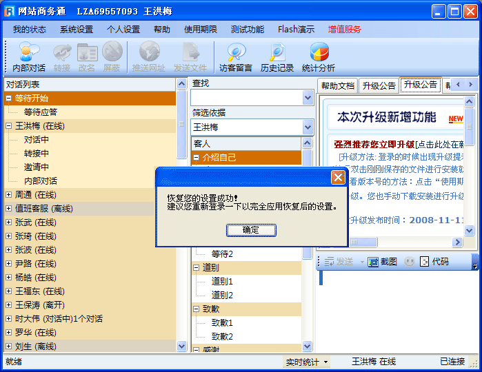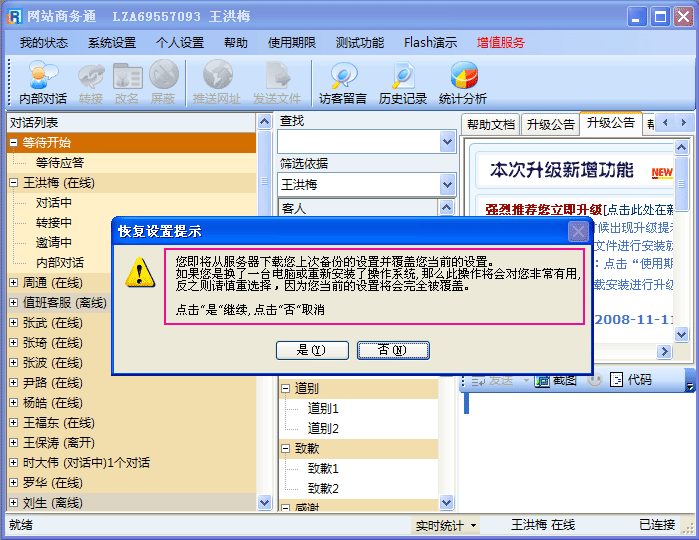 - 如果您之前在服务器上备份了您的设置,但在之后您又对软件进行了新了设置,这时如果您要使用“从服务器恢复您的设置”时要慎重,否则软件会直接恢复到您之前备份到服务器上的设置。
