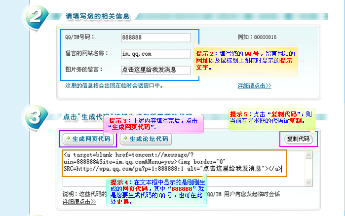 - 填写相关资料后生成网页代码,然后对成生的网页代码时行复制,如(图3);