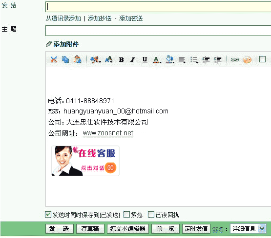 - 同样的方法,当您再发推广邮件时,您的推广签名就出现了,效果如(图6)