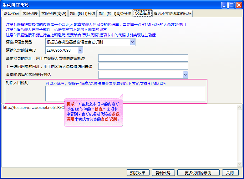 - 在“系统设置--生成网页代码”中选择"仅超链接"选项卡,复制生成的仅超链接代码,如(图3)
