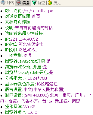 網站客服可實時查看網站當前訪客在哪個時候通過什麼方式進入網站的;停留了多久;看了網站上哪些內容;什麼時候離開的,進行統一分析。>>> 效果預覽 |
