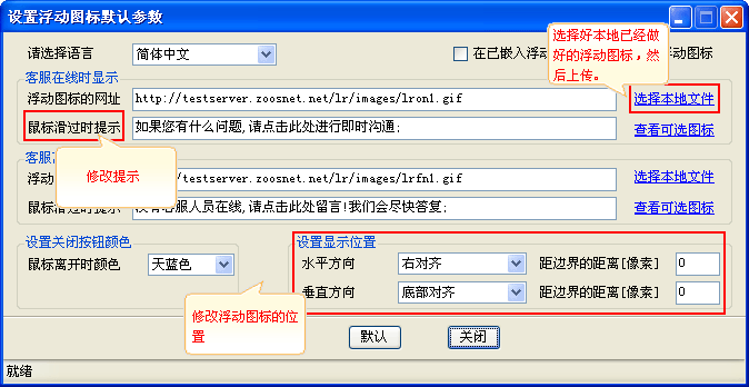 浮动图标默认参数设置