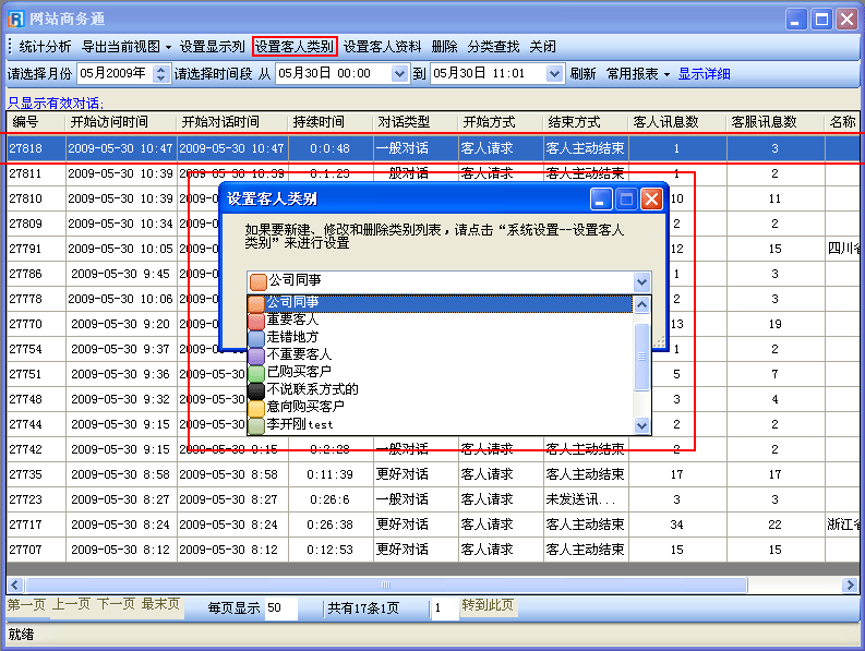 针对历史记录里面每个对话过的访客进行不同的分类,方便汇总与查找,当该访客下次访问网站时,有明确的标识