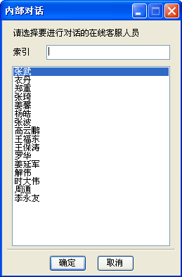 选择图一左上方向内部对话后会弹出图二,选择要进行对话的人员,即可开始进行内部交流。