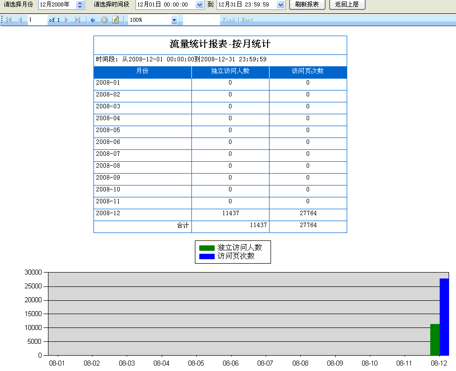 按月统计:一年之内,每个月软件在线状态时访问客人的数据统计,如(图13);