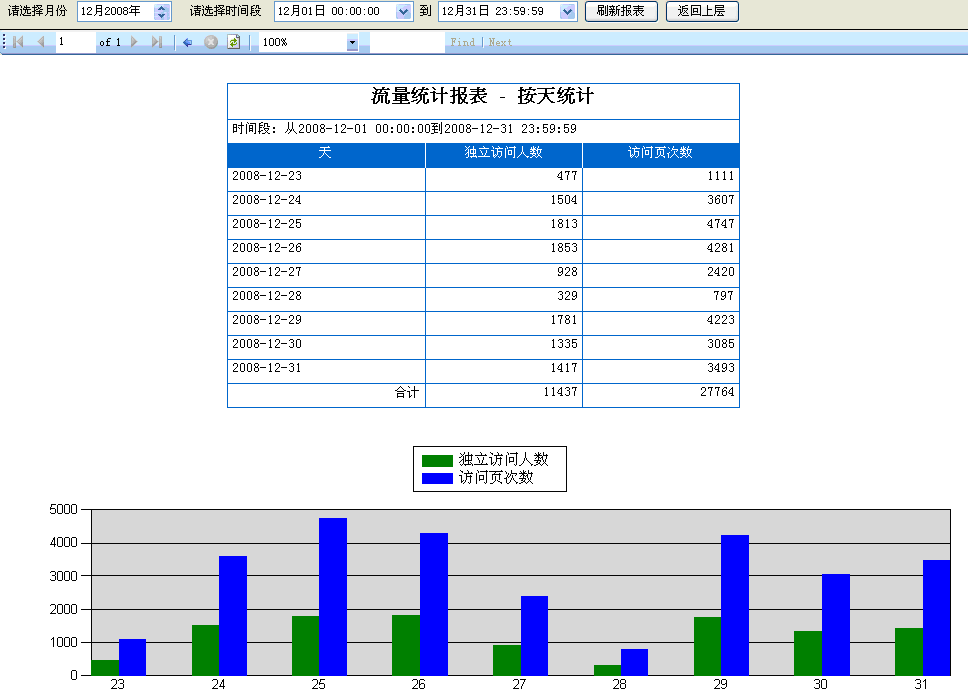 按天统计:一个月之内,每个天软件在线状态时访问客人的数据统计,如(图14);