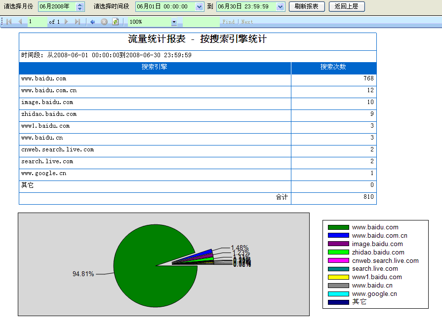 按搜索引擎统计:从访客流量入手,针对从不同搜索引擎的过来客人数据进行分析整体,提供给客户一个明细的报表。通过这些详细的报表,客户可以看出哪个搜索引擎的效果更显著,过来的访客更多,如(图15);