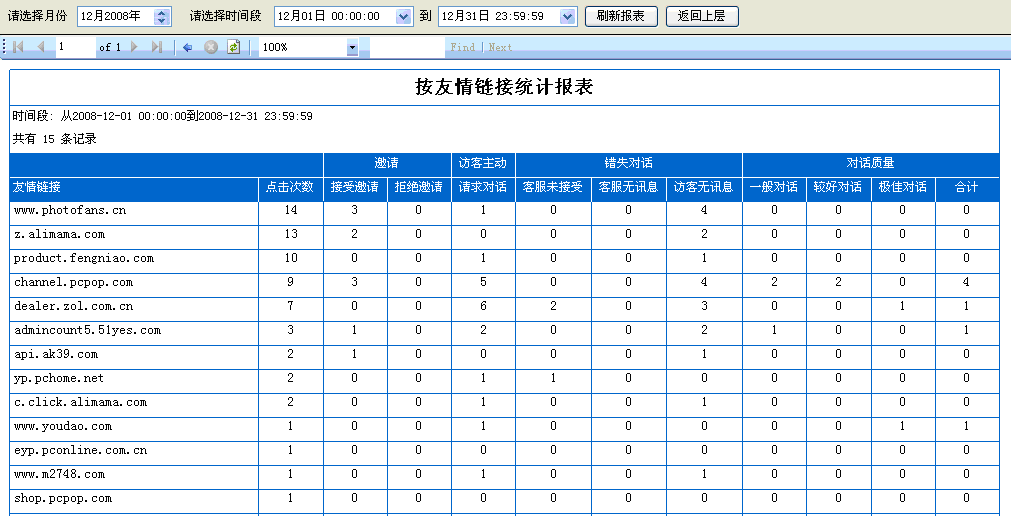 按友情链接统计对话:所有通过其他网站友情连接过来的对话数据统计,如(图7);