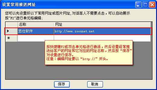 在“设置常用推送网址”中设置常用的网址及相应的名称,如(图2);