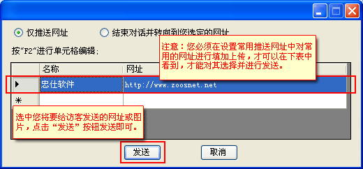 1. 必须先在“设置常用推送网址”中设置常用推送网址,才可以再访客名称右键中对访客进行发送。