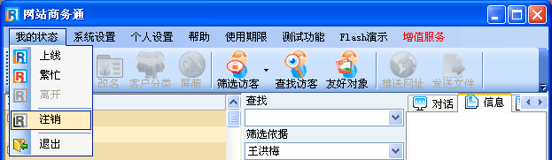 当您设置为“注销”后不退出软件,但这时只有“我的状态”和“帮助”两种功能菜单可操作。