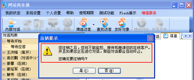 “注销”功能用于您对软件进行了一些特殊系统设置(如“更改个人权限、登陆名、密码等”),需要对软件进行注销再重新上线后才能生效。