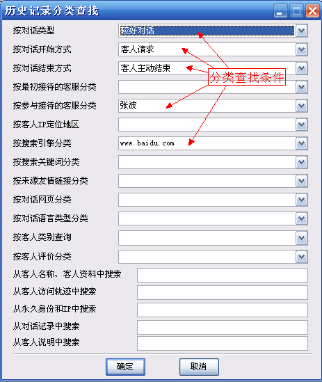 历史记录分类查找解决了查看历史繁琐、效率低、不能对历史记录进行分类查看等问题。经过长达5年时间的总结和提炼,制定了用户使用需求最多的几种查询方式和类别。通过这些分类,可以将原本积累在一起的历史记录进行分类查找和查看,在工作上可以按需查看,并且可以更方便迅速的查找到具体的某个对话记录,从而大大提高工作效率节省员工的工作成本。