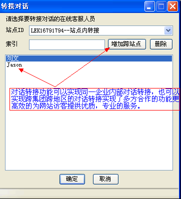 内部通讯功能之转接对话客服人员可以通过此功能,把正在咨询的访客转给另一个在线客服人员,从而解决比较棘手的问题,更好得发挥企业内部,客服人员之间分工协作的优势,为您的访客提供更优质、更专业的服务。
