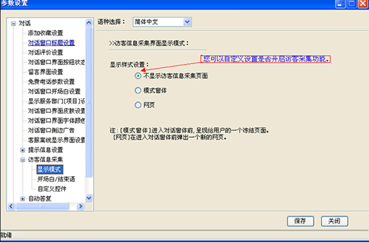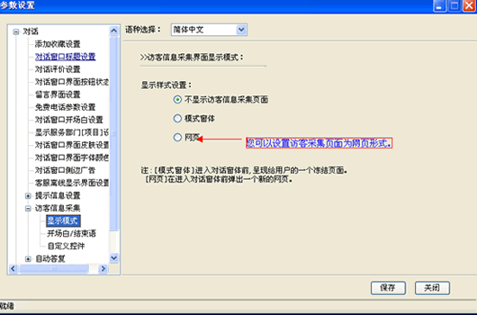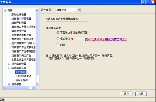 | 自定义显示模式会让您根据您网站的特点设置信息采集显示模式有窗口模式和网页模式: |
