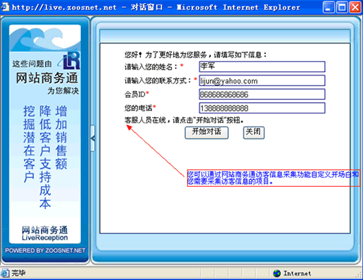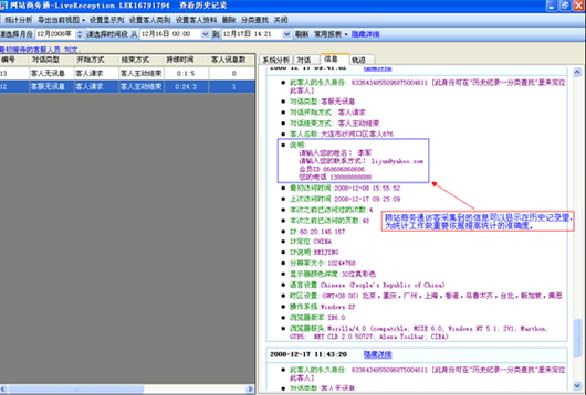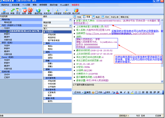 访客信息采集功能是为了更好的收集访客资料获得更多访客信息的必要途径,网站商务通访客采集功能给您的客服人员为您的网站访客提供更高效的有针对性的服务让您不错过任何一个潜在客户从而把握住每一个商机。