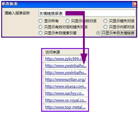 3. 可以针对某一友情链接,进行效果统计。在历史记录---分类查找中