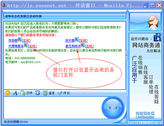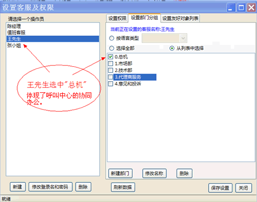 选中“总机”功能的客服人员,可以接待任何访客。